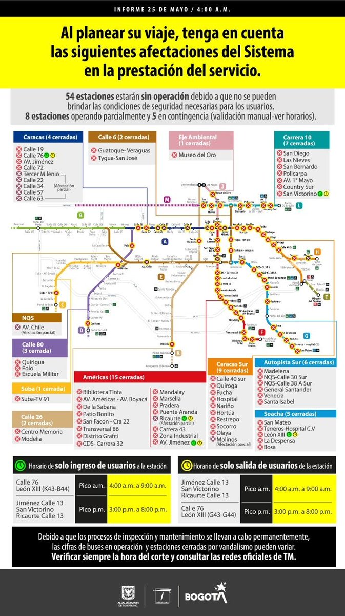 Transmilenio On Twitter El Sistema Tiene 54 Estaciones Inoperativas Por No Brindar Las Condiciones De Seguridad De Estas 5 Operan En Contingencia Con Esquemas Portatiles De Validacion En Horario Pico A M Y