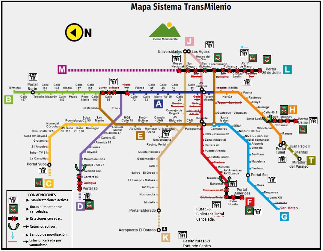 En total son 16 estaciones las cuales están totalmente cerradas y cuatro restantes funcionando de manera parcial es decir con vagones o accesos sin. Así se encuentran las estaciones de Transmilenio Debido a las manifestaciones que se presentaron en la ciudad el viernes varias estaciones amanecen cerradas en la. La jornada inicia con algunas estaciones de Transmilenio que todavía están arreglando mientras que Biblioteca El Tintal De la Sabana San Facon Carrera 22 Quirigua Hospital San Mateo Terreros-Hospital CV Calle 19 Tygua-San José están completamente inhabilitada.