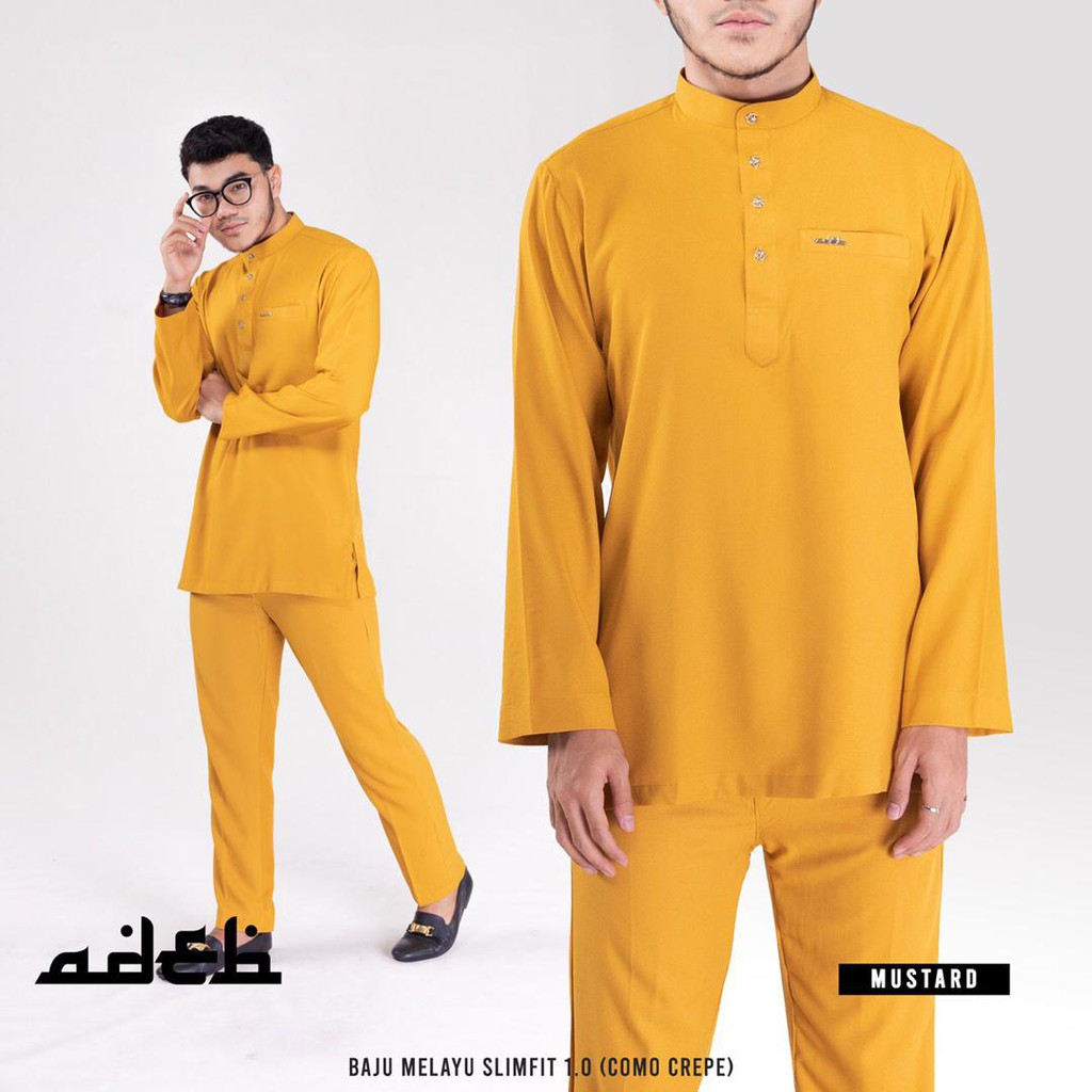 Baju Melayu Moden Slim Fit Mustard Mustard Gold Shopee Malaysia